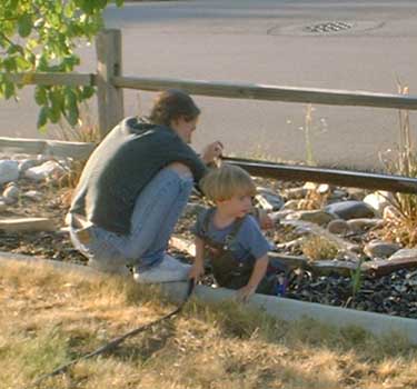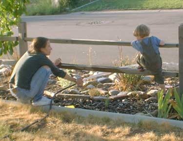 His initiative pays off. "You missed a spot, right there, Mommy!" Thanks, buddy.