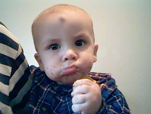 How long does it take a 1 year old baby to render a teething cookie to a fine, drooly paste? (Ask Mr. Owl...)