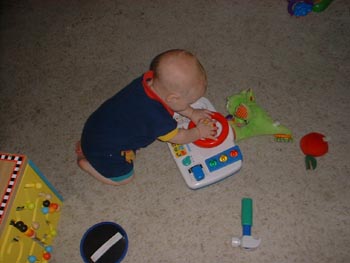 "See, this is how Daddy drives. Beep! Beep!" Cute.