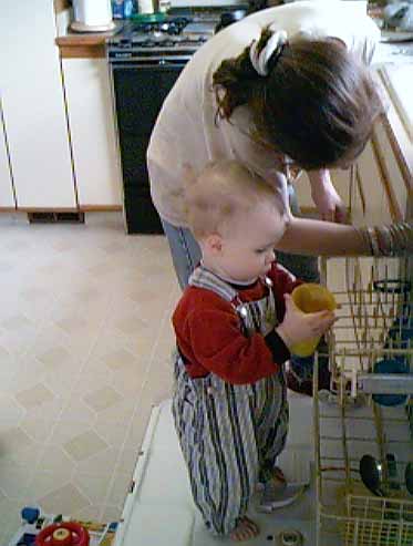 Alec is starting to help around the house now. Here he helps Mommy with the dishes.