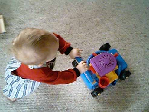 "I think this is a vacuum. Won't mom be proud?!? Why is it spitting out rug clippings?"