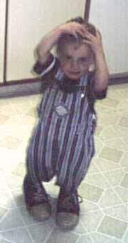 Alec the clown gets ready for his act by stretching and applying crayon makeup.