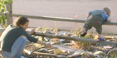 His initiative pays off. "You missed a spot, right there, Mommy!" Thanks, buddy.