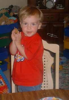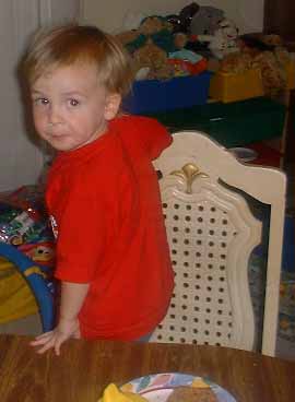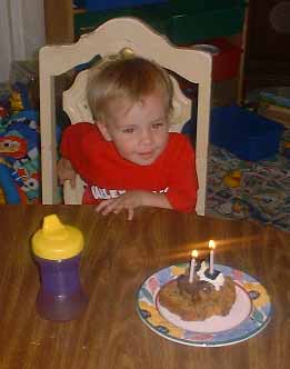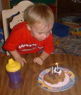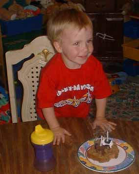 With the fire out, the birthday boy celebrates with a little "just desserts."
