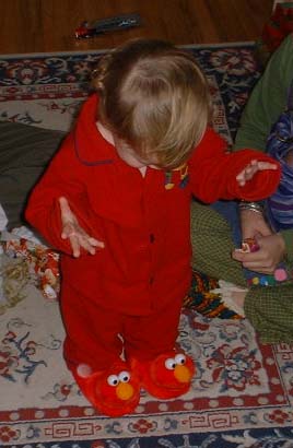 "Elmo slippers! Can this get any better?"