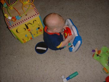 "See, this is how Daddy drives. Beep! Beep!" Cute.