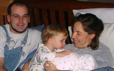Here we are, all asleep. That's our cat, Roxy, in there. She's a bed hog.